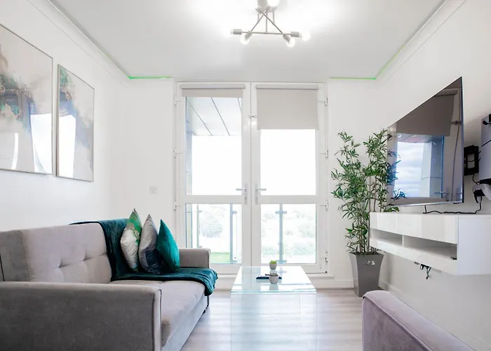2-slaapkamer Central Manchester Modern Skyline appartement ligt binnen 2 km afstand van het treinstation Deansgate en binnen 5 minuten lopen van By St Philip's Church. Pingpong en biljart zorgen voor geweldig vermaak voor de gasten.